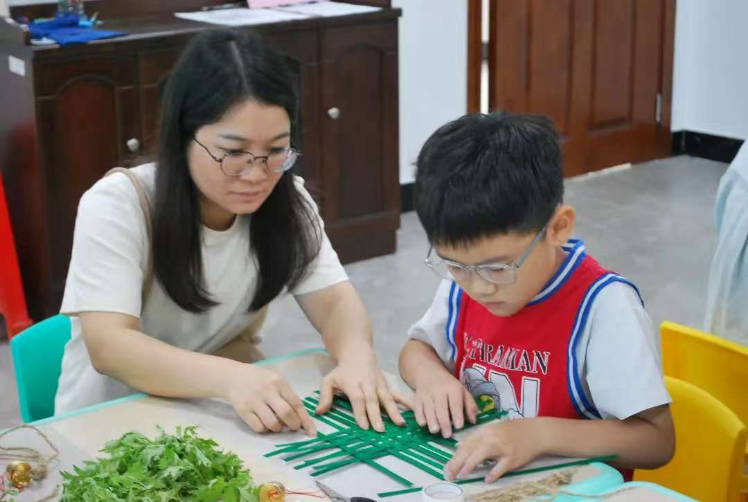 在亲子互动环节,家长与孩子们共同学习竹编船的制作流程。在家长的协助下,孩子们将细长的竹篾巧妙编织成小船,既锻炼了动手能力,也加深了对传统工艺的理解。活动现场欢声笑语,其乐融融,亲子协作的温馨场景成为节日里最美的风景。